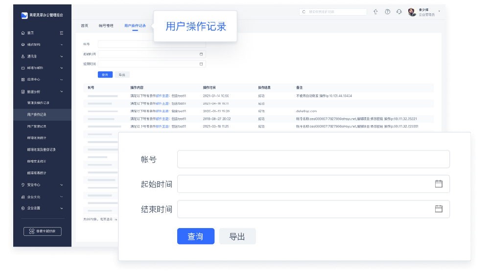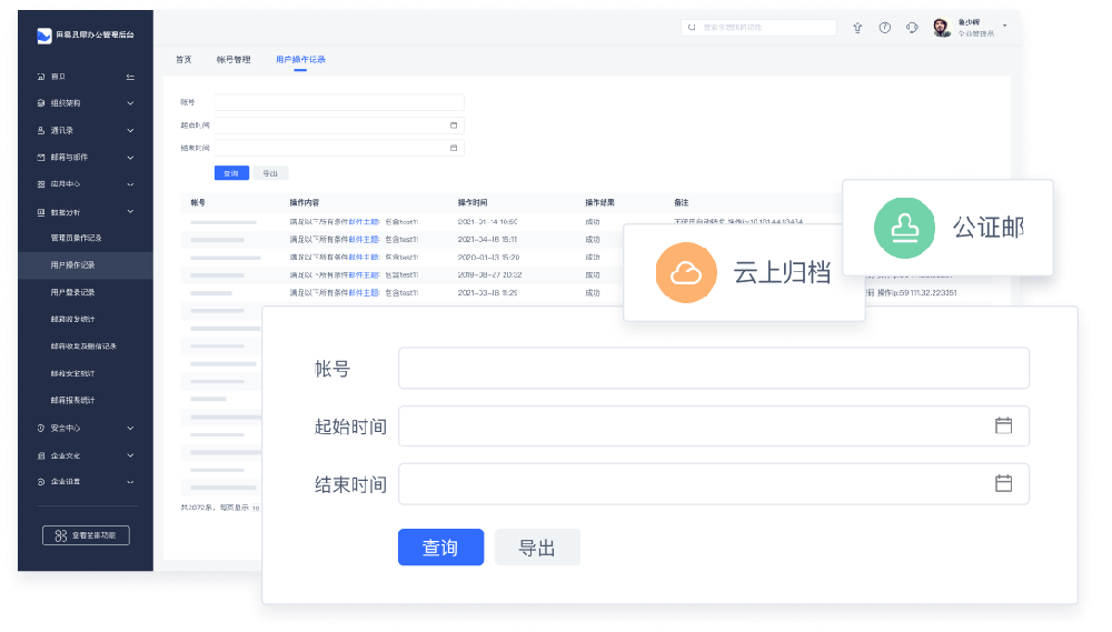 企业用户在邮箱使用中相关操作日志皆有迹可循,例如邮件归档系统的登录、设置、查询等一系列操作,一旦企业发生邮件数据安全事件,可以进行问题追溯。