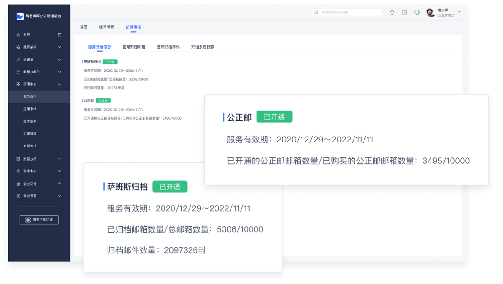 邮件数据是企业重要的信息资产。归档邮件要强化数据权限控制,确保数据的安全性,归档模块需支持严格的身份认证机制,才能查看、导出企业归档的邮件。