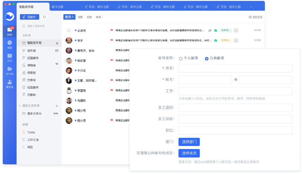 互联网企业在服务咨询方面,需要可授权访问的公共邮箱,多员工共用邮箱以保障业务服务的连贯性。