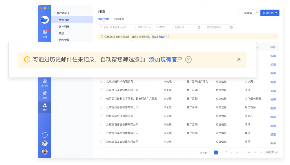 专为外贸企业打造的海外营销管理与协同一站式平台,依托「邮件+」智能管理技术,基于海外业务流程,帮助企业精准营销获客、高效运营协作,提高客户转化效率,增强组织管理能力。
